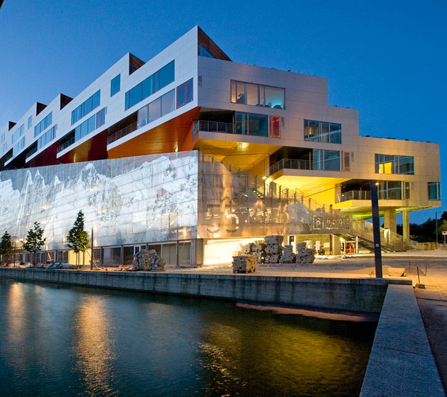 VM Bjerget er tegnet af arkitektfirmaet Bjarne Ingels Group og stod færdigt i 2008.